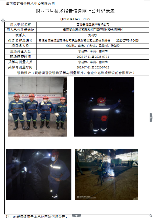 職業(yè)衛(wèi)生技術(shù)報(bào)告信息網(wǎng)上公開【富源縣色水煤業(yè)有限公司】